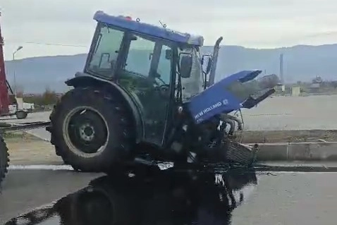 Denizli’de refüjden karşıya geçmeye çalışan traktöre anayolda seyir halindeki otomobil çarptı. Kazada iki araçta kullanılamaz hale gelirken iki kişi yaralandı.