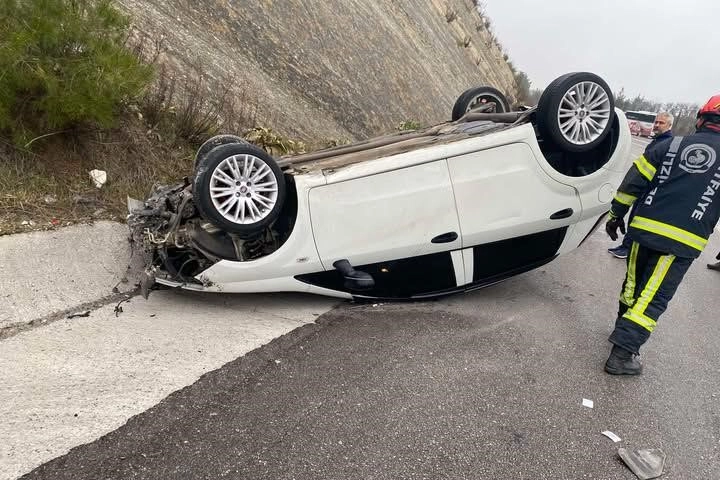 Kaza, Buldan ilçesi Manisa-Denizli Karayolu üzerinde meydana geldi. Edinilen bilgilere göre, yağmur nedeniyle kayganlaşan yolda sürücüsü henüz öğrenilemeyen 34 UB 852 plakalı otomobil kontrolden çıktı. Savrulan otomobil takla atarak yoldan çıktı. Çevredeki vatandaşların ihbarı üzerine bölgeye sağlık, itfaiye ve polis ekipleri sevk edildi. Takla atan otomobil sürücüsü kazayı yara almadan atlatırken, araçta maddi hasar meydana geldi.