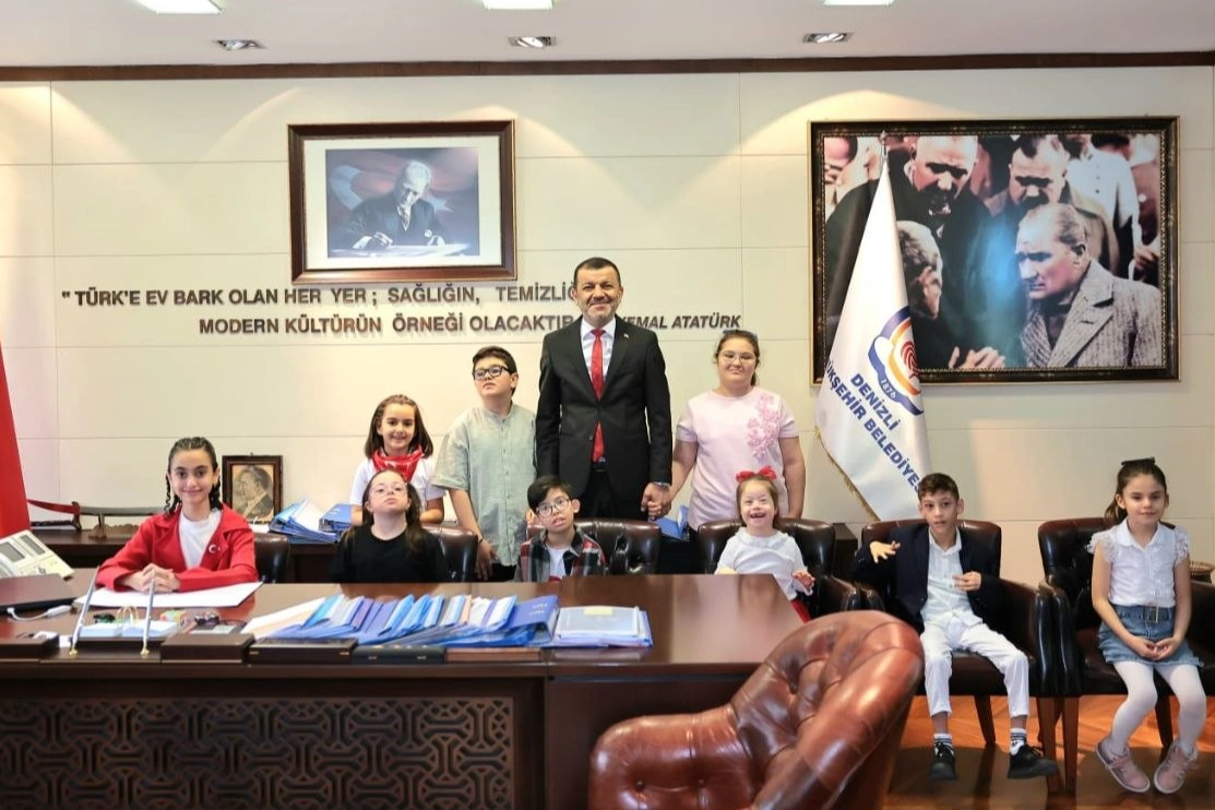 Denizli Büyükşehir Belediye Başkanı Bülent Nuri Çavuşoğlu, “Bugün bu koltukta oturan evlatlarımızın gözlerindeki ışık, bizlere geleceğe dair büyük bir umut veriyor. Özel çocuklarımızla, gençlerimizle hep birlikte daha yaşanabilir, daha adil ve engellerin olmadığı bir Denizli inşa etmek için çalışıyoruz. Çocuklarımızın yüzünün güldüğü bir şehir hayaliyle çalışmalarımızı gerçekleştiriyoruz. Gazi Mustafa Kemal Atatürk’ün çocuklara armağan ettiği bu bayramda, egemenliğin gerçek sahibi olan milletimizin küçük temsilcilerini ağırlamaktan onur duyuyorum” ifadelerine yer verdi.