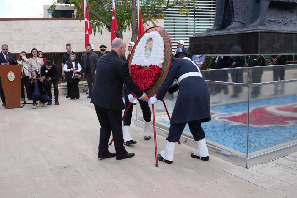 Denizli'de Türkiye Cumhuriyetinin kuruluşunun 102. yılı ve 29 Ekim Cumhuriyet Bayramı kutlamaları kapsamında çelenk sunma töreni düzenlendi. Pamukkale Kaymakamlığının önündeki Atatürk Anıtında düzenlenen törene Denizli Valisi Ömer Faruk Coşkun, Denizli Büyükşehir Belediye Başkanı Bülent Nuri Çavuşoğlu, 11. Komando Tugay ve Garnizon Komutanı Tuğgeneral Turgut Muhammet Çalışkanlar, Pamukkale Kaymakamı Uğur Bulut, Merkezefendi Kaymakamı Abdullah Demir, Denizli Merkezefendi Belediye Başkanı Şeniz Doğan, Denizli milletvekilleri, siyasi parti, kamu kurum ve kuruluşlarıyla meslek örgütleri temsilcileri ve vatandaşlar katılım sağladı. Denizli Valisi Ömer Faruk Coşkun ve Denizli Büyükşehir Belediye Başkanı Bülent Nuri Çavuşoğlu ile 11. Komando Tugay ve Garnizon Komutanı Tuğgeneral Turgut Muhammet Çalışkanlar’ın Atatürk anıtına çelenkleri sunmasıyla başlayan tören, saygı duruşunda bulunulması ve İstiklal Marşının okunmasıyla sona erdi. Denizli'deki 29 Ekim Cumhuriyet Bayramı kutlamaları yarın Denizli Valisi Ömer Faruk Coşkun'un makamında tebrikatları kabul etmesi ve saat 10.15’de başlayacak olan resmi geçit töreniyle devam edecek.