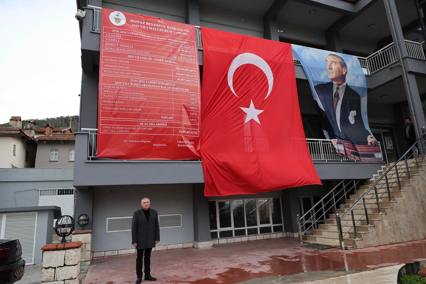 Honaz Belediyesi, şeffaf belediyecilik anlayışı kapsamında 2025 yılına ait mali durum tablosunu kamuoyuyla paylaştı. Belediye binasına asılarak vatandaşların bilgisine sunulan tabloda, belediyenin mali yapısının güçlü ve borçsuz olduğu belirtildi.