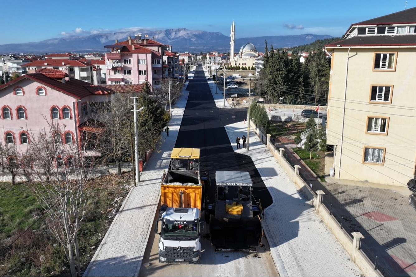 Denizli Büyükşehir Belediyesi, Tavas ilçesi Recep Yazıcıoğlu Caddesi’nde sıcak asfalt serim çalışmalarını sürdürüyor.