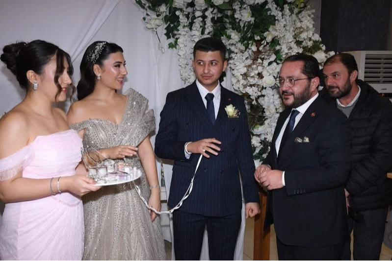 Gecenin en anlamlı anlarından biri ise nişan yüzüklerinin takılması sırasında yaşandı. Genç çiftin yüzük kurdelesini MHP Denizli İl Başkanı Mehmet Ali Yılmaz kesti. Törende kısa bir konuşma yapan Yılmaz, “İki kıymetli ailemizin evlatlarının böylesine güzel bir birlikteliğe adım atmasına şahitlik etmekten büyük mutluluk duyuyorum. Hatice ve Adnan Samet’e bir ömür boyu sağlık, huzur ve mutluluk diliyorum” ifadelerini kullandı.