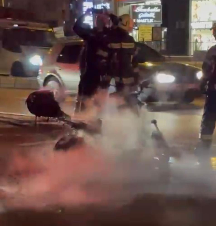 Saniyeler içerisinde alevler içerisinde kalan motosikletinin karşısına geçip oturan sürücü, yanan aracını istedi. Yoldan geçene diğer sürücülerin durumu 112 Acil Çağrı Merkezine bildirmesi üzerine bölgeye itfaiye ve polis ekipleri sevk edildi. Bölgeye gelen itfaiye ekipleri yangını, kısa sürede söndürdü.
