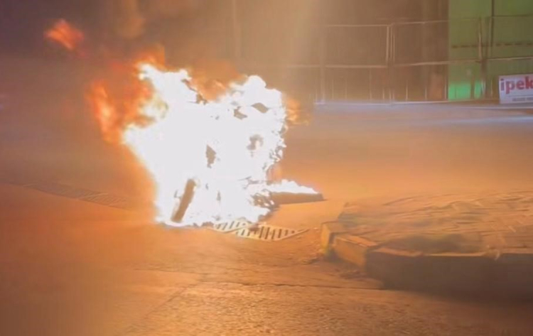 Denizli'de arıza yapan elektrikli motosikletini çalıştıramayan sürücü, aracını yolun ortasında ateşe verdi. Motosikletinin üzerine benzin dökerek ateşe veren sürücü, karşısına oturup yangını izledi.
