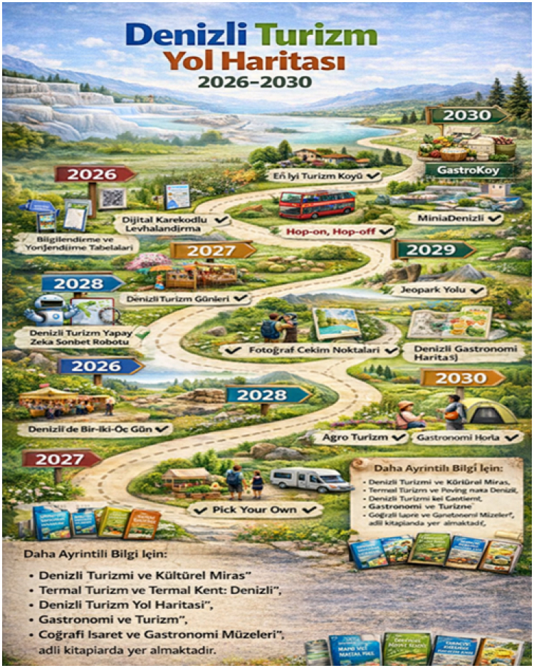 Prof. Dr. Serkan Bertan tarafından hazırlanan Denizli Turizm Yol Haritası, yerel yönetimler, kamu kurumları, üniversiteler, sivil toplum kuruluşları ve sektör paydaşları için stratejik bir rehber niteliği taşıyor. Çalışmanın hayata geçirilmesiyle Denizli’nin, sürdürülebilir ve deneyim odaklı turizmde marka kentler arasında yer alması hedefleniyor.