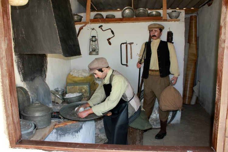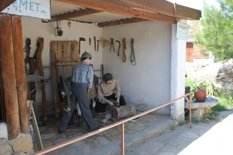 Bahçeden adımınızı attığınız anda kendinizi gerçek bir köy ortamında buluyorsunuz. Bir odada yün eğiren, kilim dokuyan köylü kadınlar, bir odada demir döven ustalar, bir odada kalaycılar, nalbantlar…. Fotoğraf çekmek yasak olduğu için paylaşamadığım köy yaşamını minyatür olarak anlatan insanı hayran bırakacak ayrıntılara yer verilmiş bir alan. Paylaşılan fotğtraflarda ise bu mankenler hareketli.